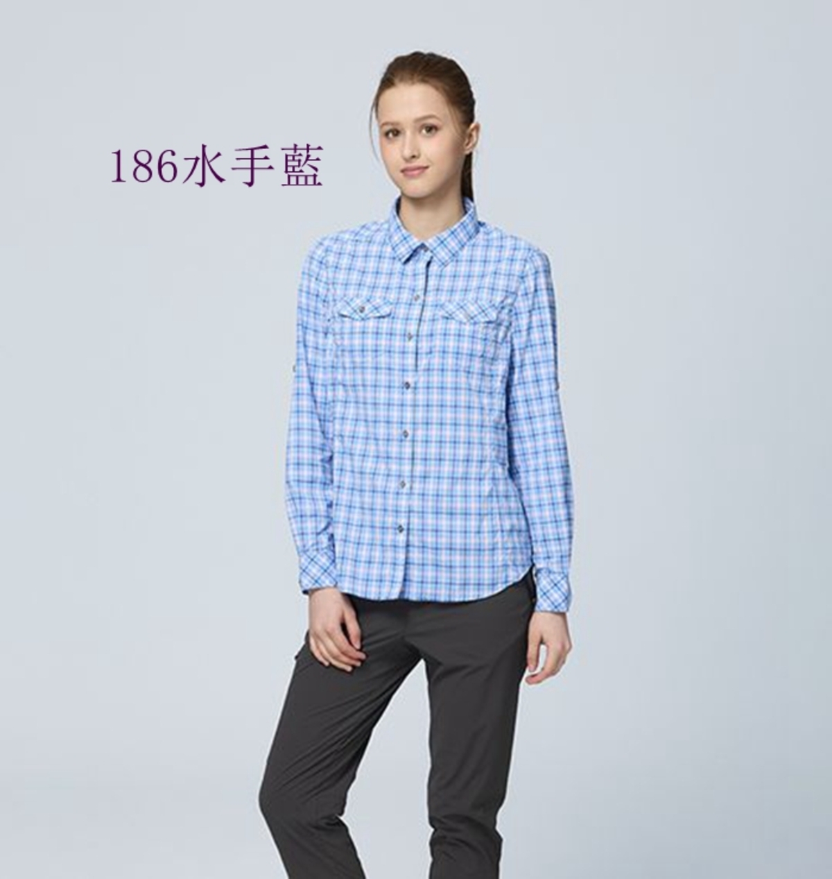 女彈性格紋輕薄抗UV長袖襯衫
