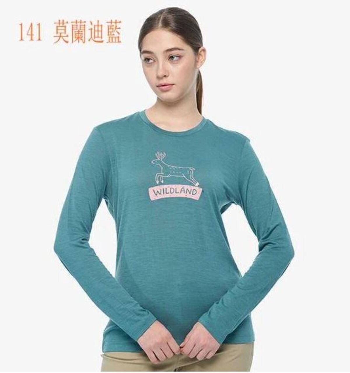 產品特性 : 修身圓領長袖版型;插畫:荒野LOGO台灣水鹿之實體手繪可愛風格