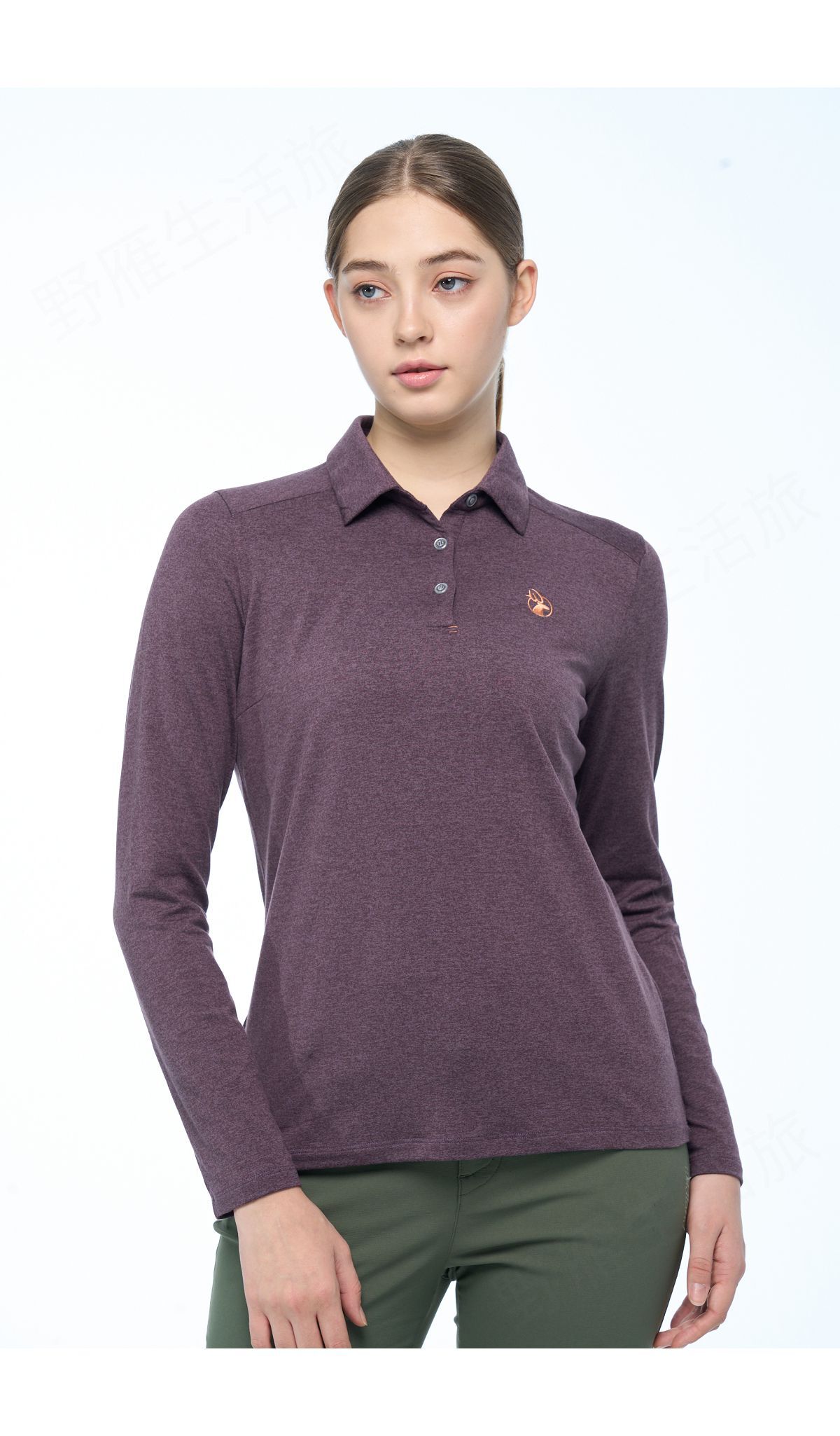 女彈性雙色磨毛POLO保暖衣