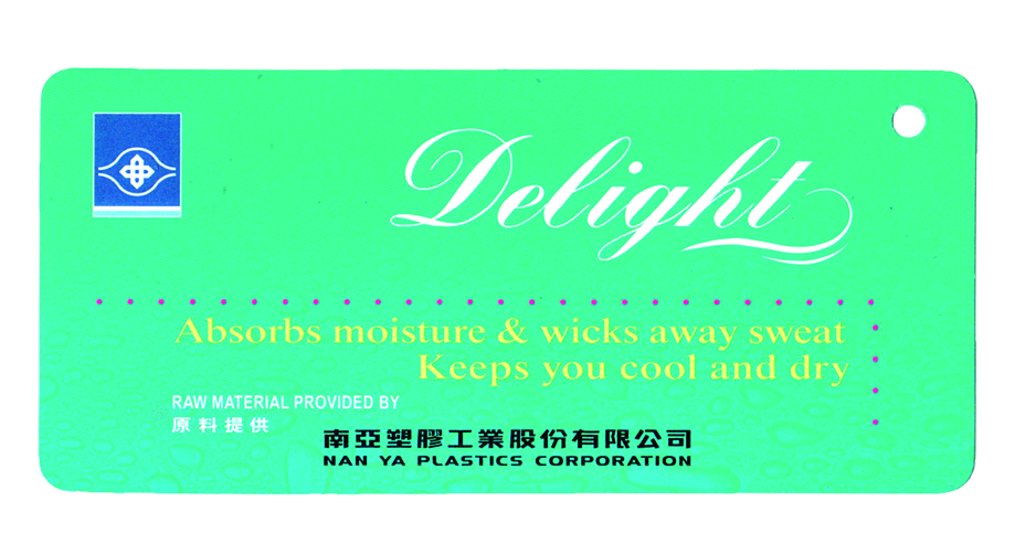 DELIGHT吸濕排汗 運動後產生的濕氣、汗水,藉由布料能夠快速擴散蒸發,再導入外界乾爽的空氣,使您穿著時隨時保持乾爽舒適。