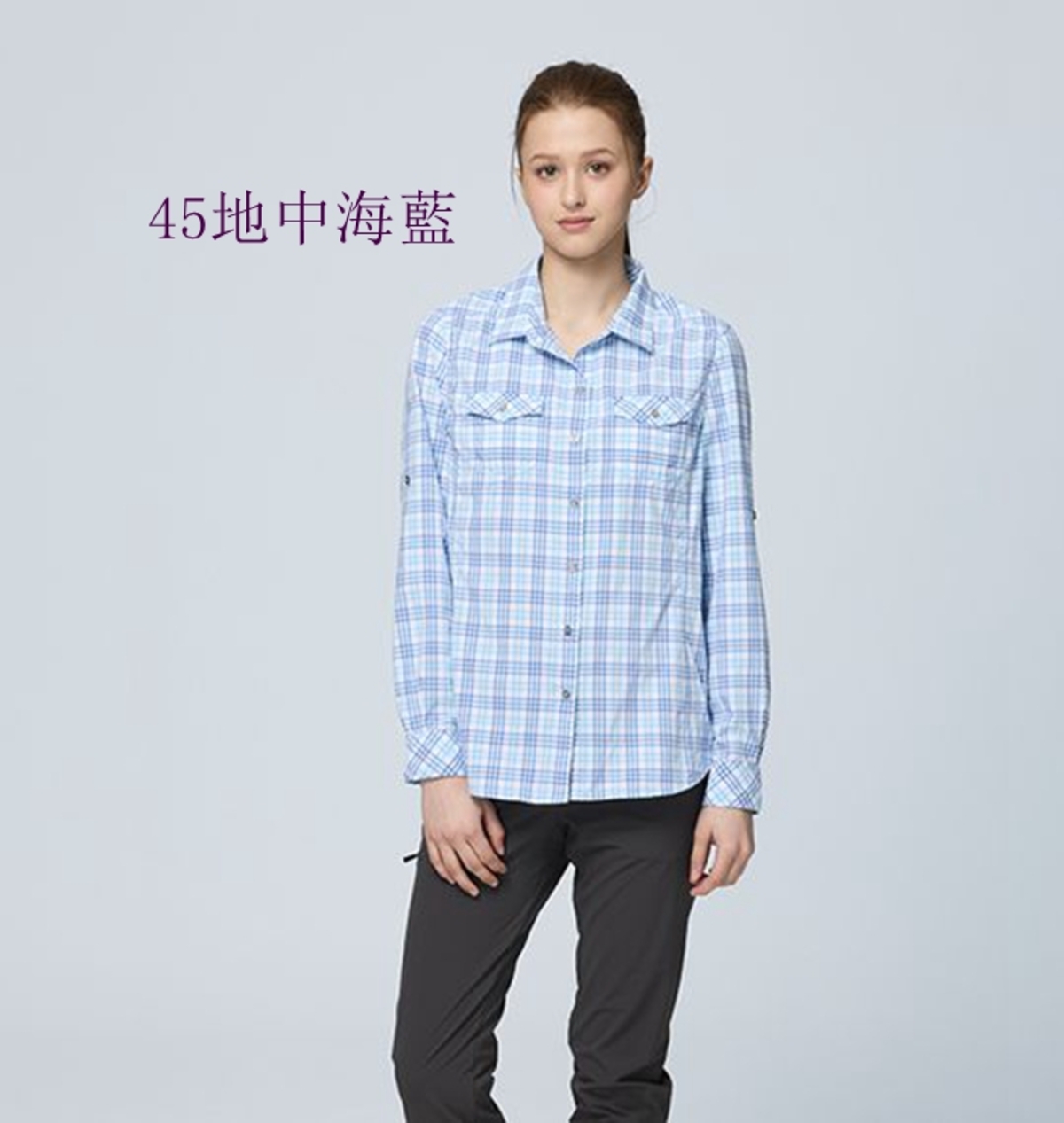 女彈性格紋輕薄抗UV長袖襯衫