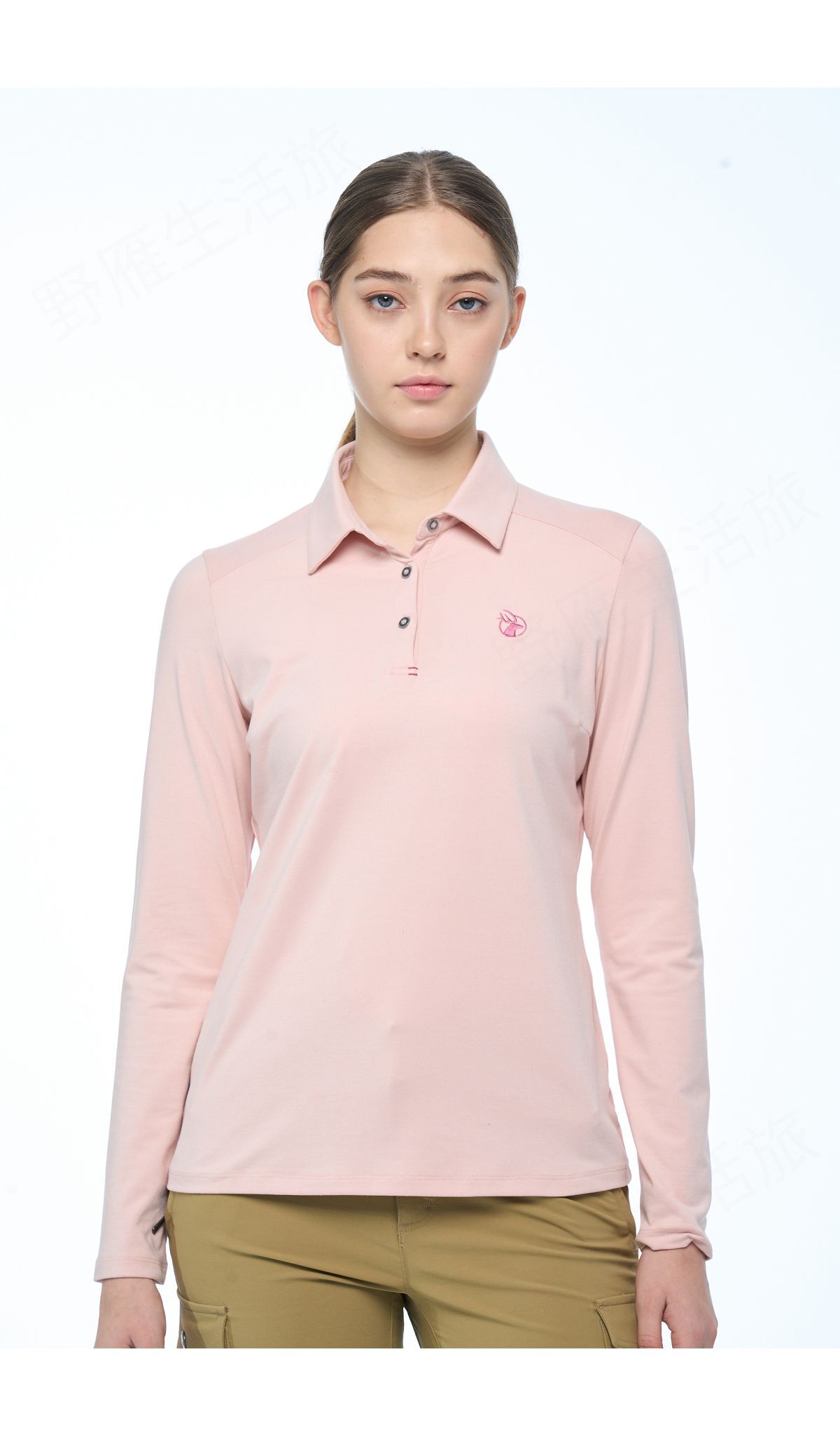 女彈性雙色磨毛POLO保暖衣